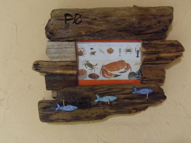 cadre avec 3 accroches clés décor image de crustacés de nos côtes + 3 petits poissons en déco Prix de vente à l'atelier