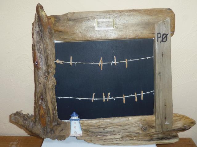 Chouette porte photos en bois flotté d'Oléron tout simple pour vos meilleurs souvenirs. Prix de vente à l'atelier.