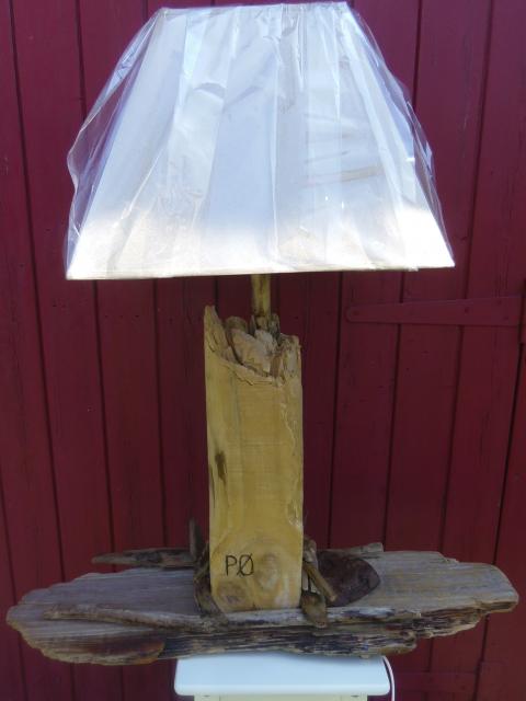 lampe en bois flotté récolté sur nos plages d'Oléron abat jour carré beige prix de vente atelier