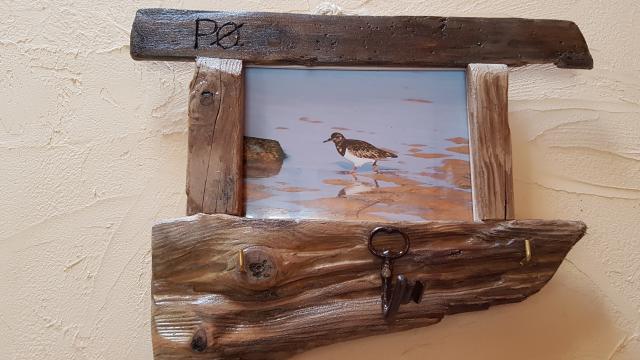 Petit Cadre Accroche clés en bois flotté d'Oléron photo oiseau de bord de mer. Prix de vente atelier