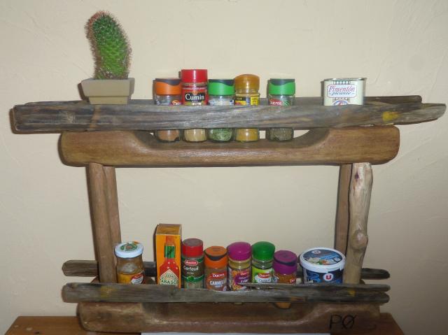Lorsqu'une "échelle de coupée" tombe à la mer et arrive dans l'atelier de Passion Øléron, elle se transforme en une originale étagère à épices ou autres... Prix de vente à l'atelier.