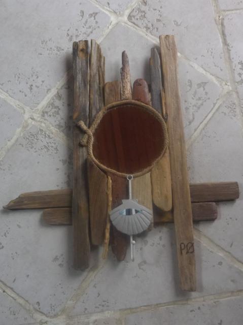 miroir une patère. Déco coquille St Jacques (bois gris) sur bois flotté trouvé sur nos plages d'Oléron Prix de vente à l'atelier