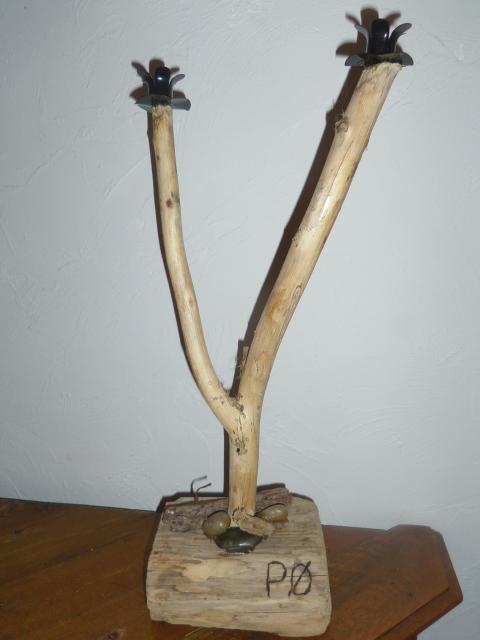 Bougeoir 2 branches en bois flotté récolté sur nos plages d'Oléron.prix de vente à l'atelier