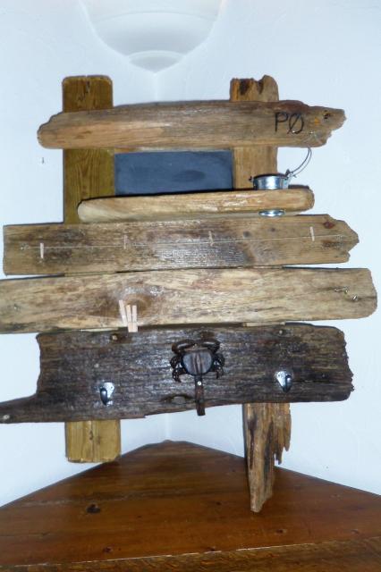 Porte manteau ardoise en bois flotté récolté sur nos plages d'Oléron/accroche photos / 3 patères / petit récipient pour la craie